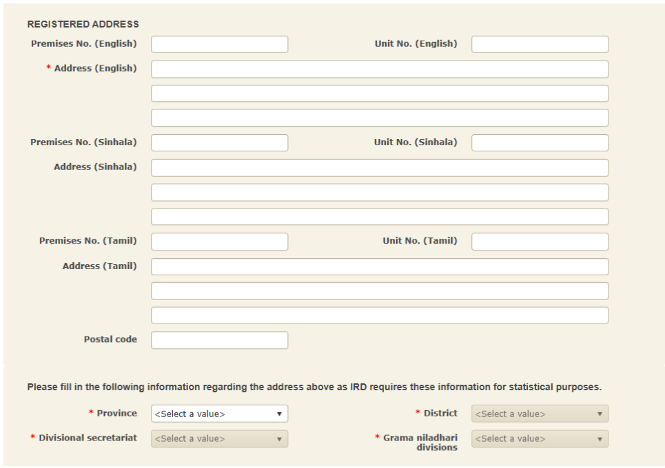 - Company name (in English, Sinhala, and Tamil if available)